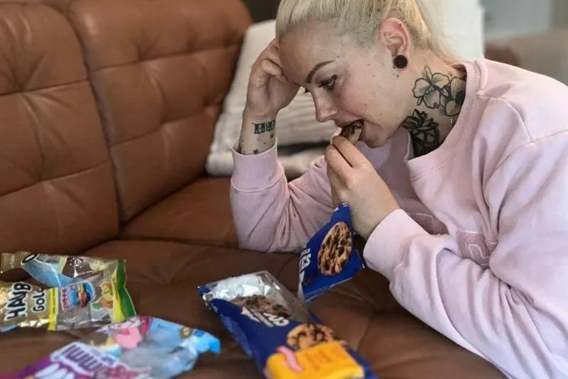 aber abends, wenn der Stress abfällt, in Essanfälle rutschen.